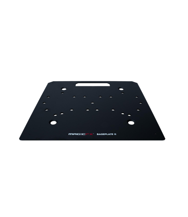 De MAGIC FX BASEPLATE II is een zware plaat voor de montage van diverse configuraties MAGIC FX-producten. Dankzij de rubberen voetjes kan dit product op een podium worden geplaatst, maar het is ook voorzien van vier gaten voor montage aan een truss (verschillende merken). Verder heeft de BASEPLATE II een handvat voor transport, is hij gemaakt van roestvrij staal en heeft hij een productaanduiding aan de onderkant, zodat alle soorten producten op de plaat passen.