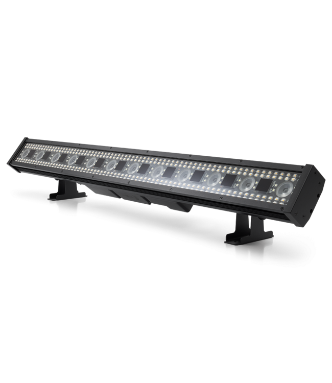 De CLF LEDbar EFF is dé krachtige en veelzijdige outdoor LED-effectbar die geen enkel evenement meer hetzelfde maakt. Met een indrukwekkende 288 individueel aanstuurbare RGBA-pixels aan beide zijden, gecombineerd met 12× RGB-WW 4-in-1 LED's in het midden en een krachtige 48× witte strobe-LED's, levert deze bar een explosieve mix van pixelmapping, eye-candy effecten, vloeiende kleuren en intense strobe-pulsen.