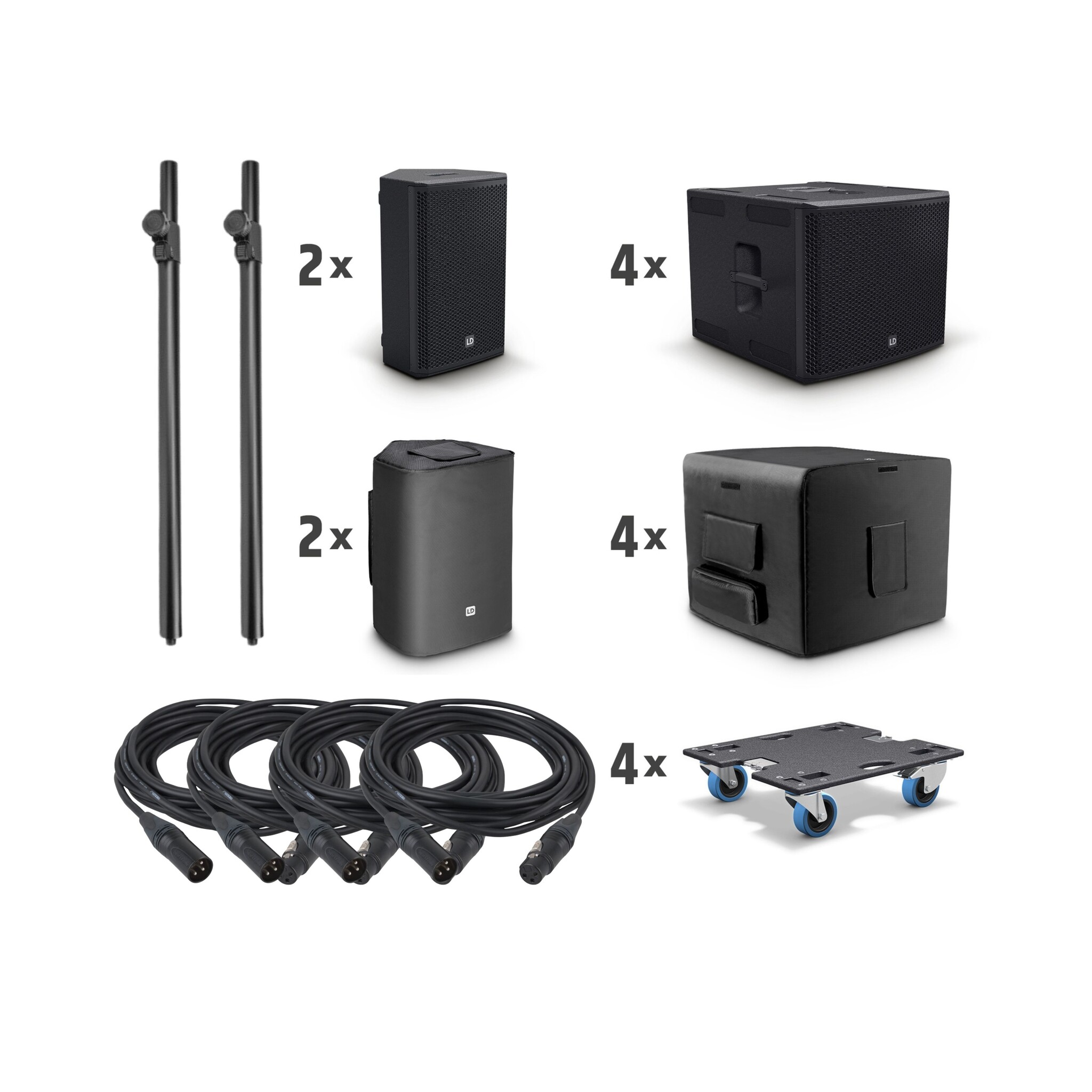 Deze complete set is geschikt voor diverse toepassingen, waaronder DJ-sets, live bands en grote evenementen, en biedt een combinatie van kracht, veelzijdigheid en gebruiksgemak.