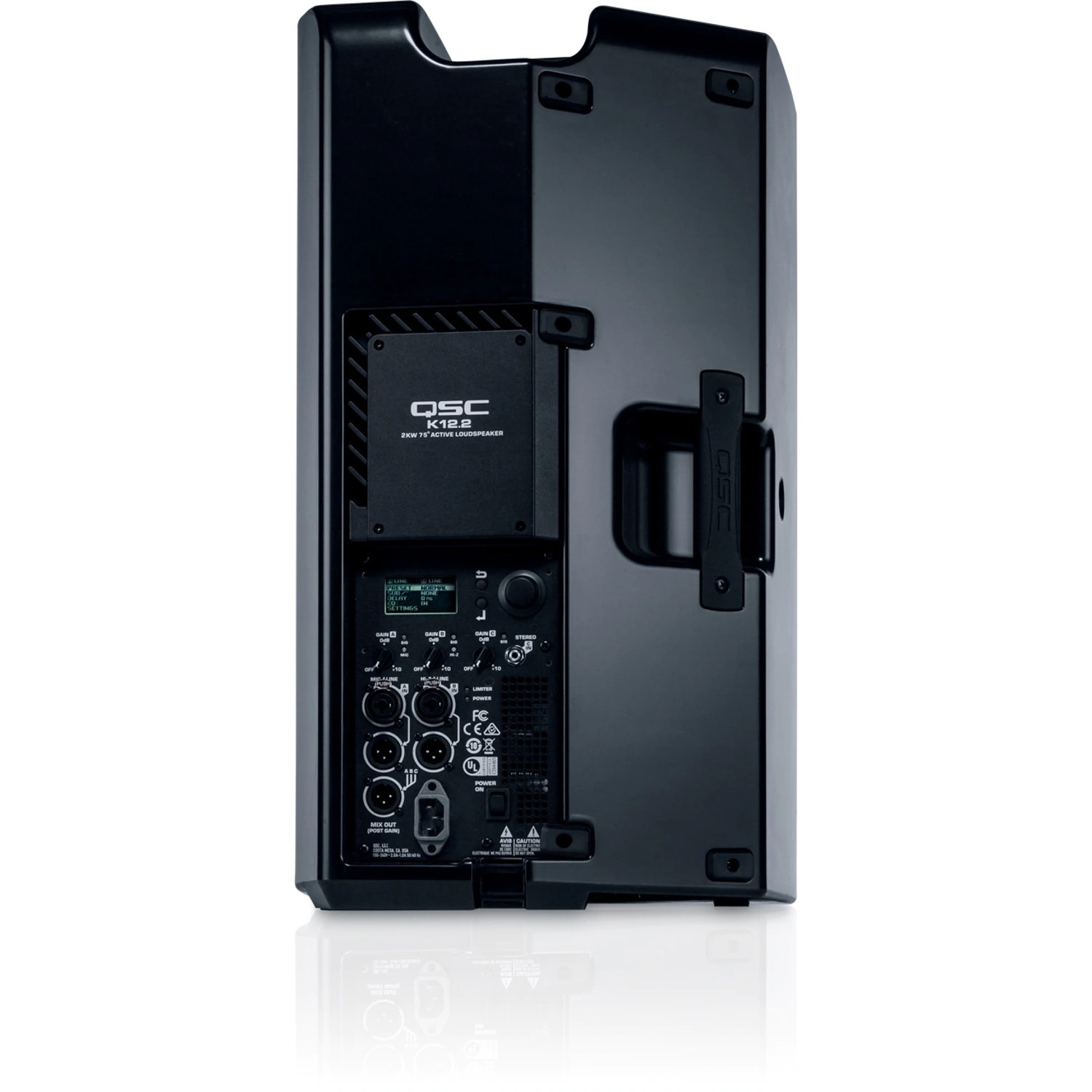 De QSC K12.2 actieve luidspreker combineert een 12-inch woofer en een 1.4-inch titanium compressie-driver, aangedreven door een 2000 watt Class D-versterker. Met een frequentiebereik van 45 Hz - 20 kHz en een maximale SPL van 132 dB is deze luidspreker ideaal als fullrange speaker in een PA-systeem of als vloermonitor dankzij de schuine zijde. De K12.2 biedt flexibele aansluitmogelijkheden, waaronder 2x XLR/TRS-combi-ingangen (met Hi-Z voor instrumenten), een 3.5 mm jack en drie XLR-uitgangen voor doorlussen of mix-output. Met Intrinsic Correction tuning, Directivity Matched Transition en een digitaal display voor instellingen zoals EQ, crossover en delay, pas je de luidspreker eenvoudig aan elke toepassing aan. De stevige ABS-behuizing, rigging-punten en dubbele statiefflens (normaal of 7.5° gekanteld) maken de K12.2 geschikt voor diverse opstellingen, van statief tot line array.