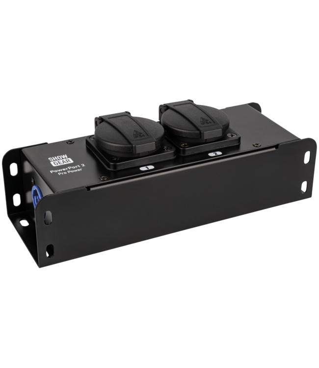 De Powerport 2 Power Pro is een eenvoudige stekkerdoos in een metalen IP20-behuizing. Hij heeft een blauwe, snel vergrendelbare Power Pro-ingang, een witte, snel vergrendelbare Power Pro-uitgang aan de andere kant voor serieschakeling, beide compatibel met de gangbare merken, en beschikt over twee Schuko-stopcontacten. Twee M10-gaten met schroefdraad kunnen worden gebruikt voor de bevestiging van een klem en een veiligheidsoog.