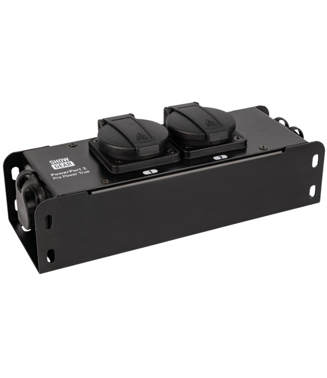 De Powerport 2 Power Pro True is een eenvoudige stekkerdoos in een metalen behuizing met IP20-classificatie. Hij heeft Power Pro True in- en uitgangsaansluitingen aan weerszijden voor serieschakeling, beide compatibel met de gangbare merken, en beschikt over twee Schuko-stopcontacten. Twee M10-gaten met schroefdraad kunnen worden gebruikt voor de bevestiging van een klem en een veiligheidsoog.