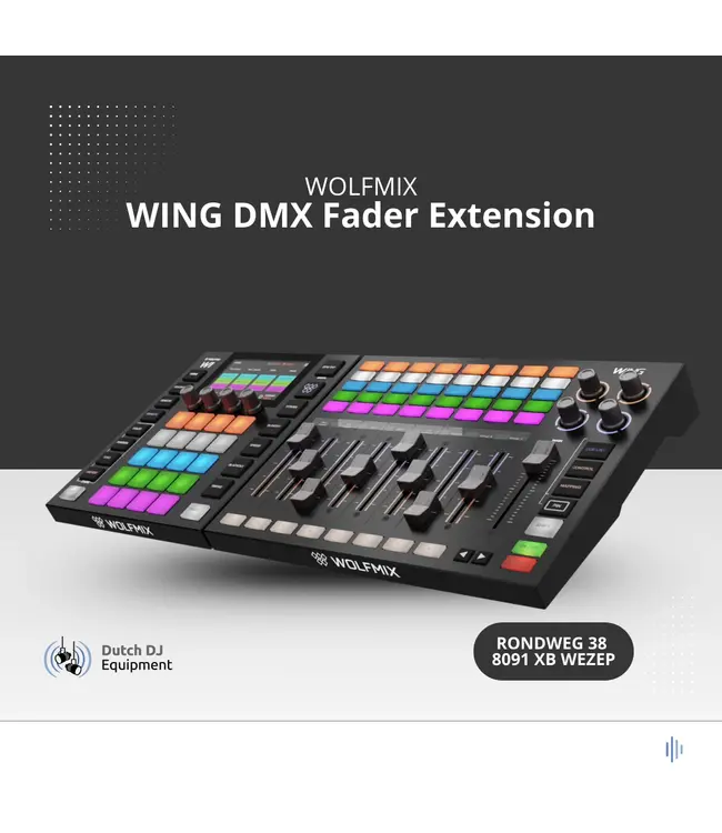 De Wolfmix WING is de nieuwste uitbreiding voor de W1 console. Dankzij 8 gemotoriseerde faders en 40 extra performance pads krijg je een volledige standalone lichtshow. Binnenkort als demo in Wezep! Lees meer.